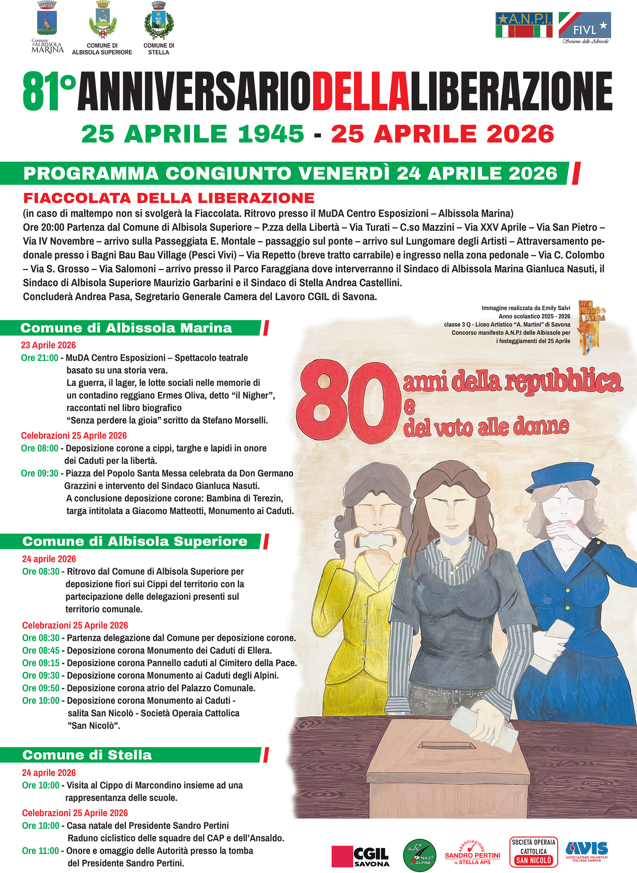Albissola celebra l’81° Anniversario della Liberazione con un programma condiviso che coinvolge Albissola Marina, Albissola Superiore e Stella.