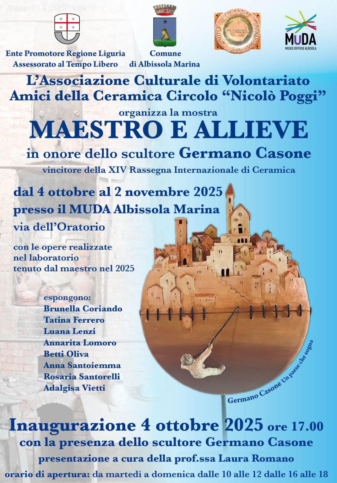 Mostra dal titolo “Maestro e allieve” in onore dell’artista Germano Casone, a cura dell'Associazione Culturale di Volontariato Amici della Ceramica - Circolo "Nicolò Poggi"