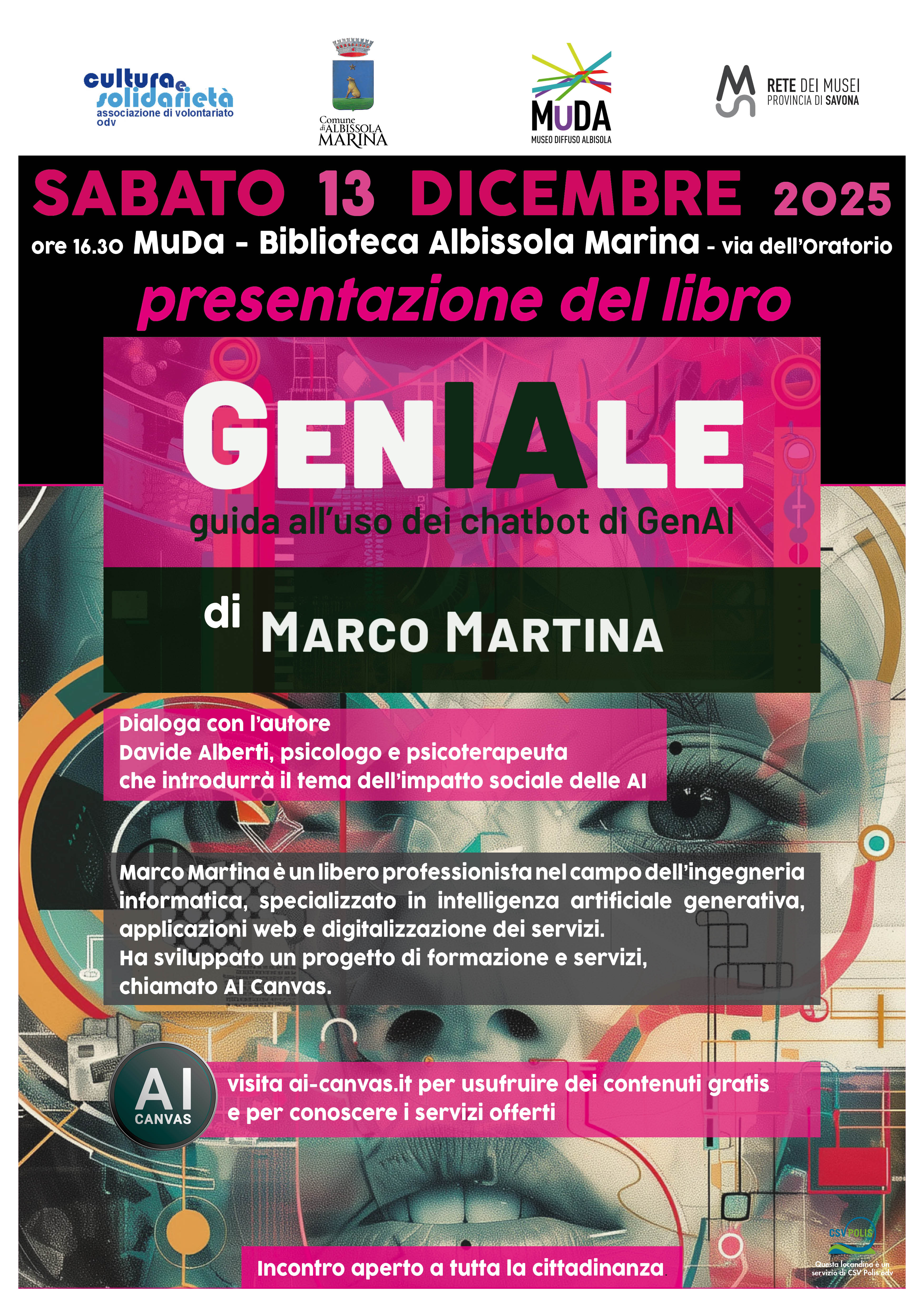 Sabato 13 dicembre alle ore 16,30 presentazione del libro “GenIAle” di Marco Martina: