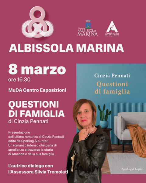Albissola Marina celebra l’8 marzo con un appuntamento culturale dedicato alla narrativa contemporanea. Presso il MuDA – Centro Esposizioni, alle ore 16.30, si terrà la presentazione del nuovo romanzo di Cinzia Pennati, Questioni di famiglia, pubblicato da Sperling & Kupfer.