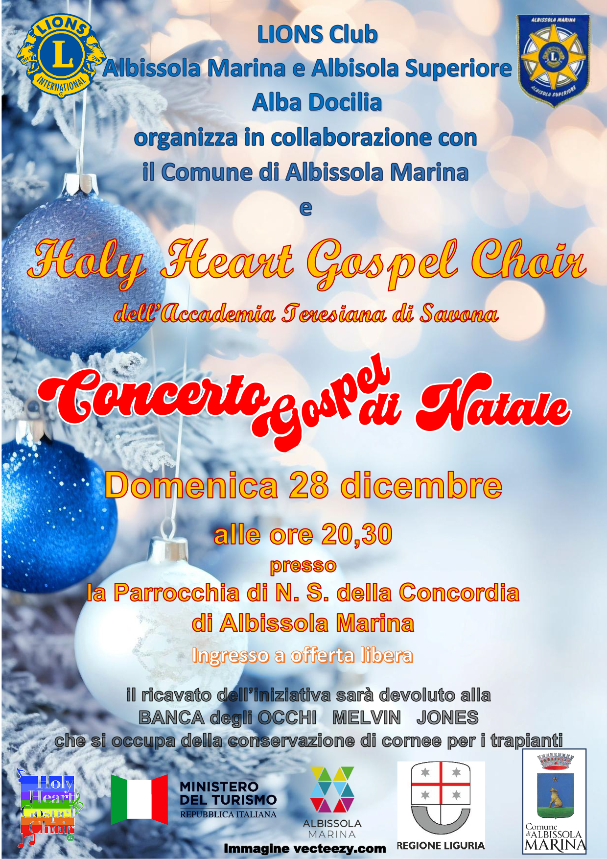 promosso dal Lions Club Albissola Marina e Albisola Superiore Alba Docilia, in collaborazione con il Comune di Albissola Marina e l’Holy Heart Gospel Choir dell’Accademia Teresiana di Savona.