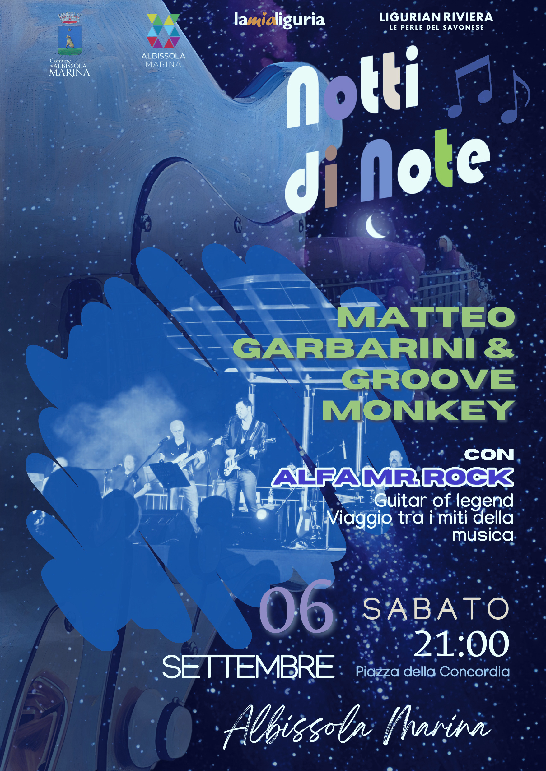 Sul palco, il noto chitarrista e cantautore ligure Matteo Garbarini, accompagnato dai Groove Monkey – Fabio Oliva al basso e Filippo Piluso alla batteria – darà vita a un repertorio potente e suggestivo, reinterpretando i brani che hanno segnato la storia della musica mondiale.